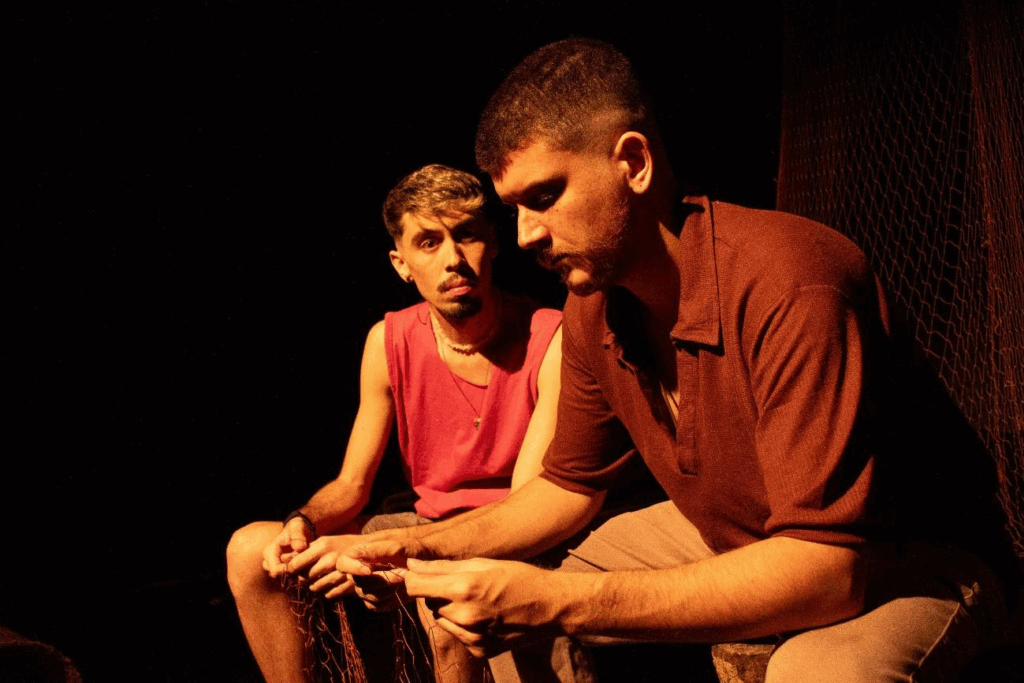 Criada de forma colaborativa a partir das vivências dos atores, a peça leva o público a mergulhar em uma atmosfera carregada de mistério e tensão dramática, em que personagens buscam respostas para uma maldição que paira sobre a comunidade ribeirinha. Com 50 minutos de duração e classificação indicativa de 14 anos, a montagem combina suspense, emoção e reflexão.